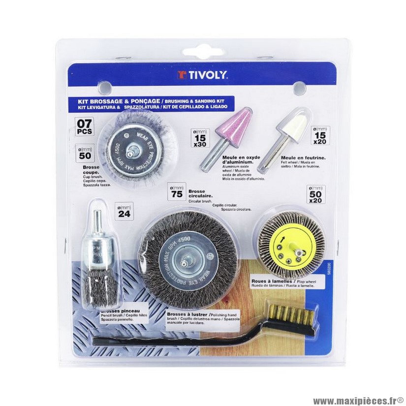 Brosse + meule et roue abrasive marque Tivoly (x7)