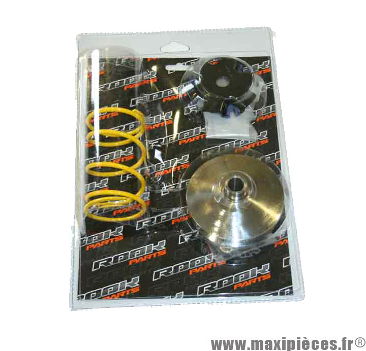 Ces packs comprennent un variateur avec galets, une courroie crantée, une joue fixe, un rocher de kick, deux ressorts d'embrayage de poussée, une cloche d'embrayage, un embrayage, un joint de carter transmission et un block piston.